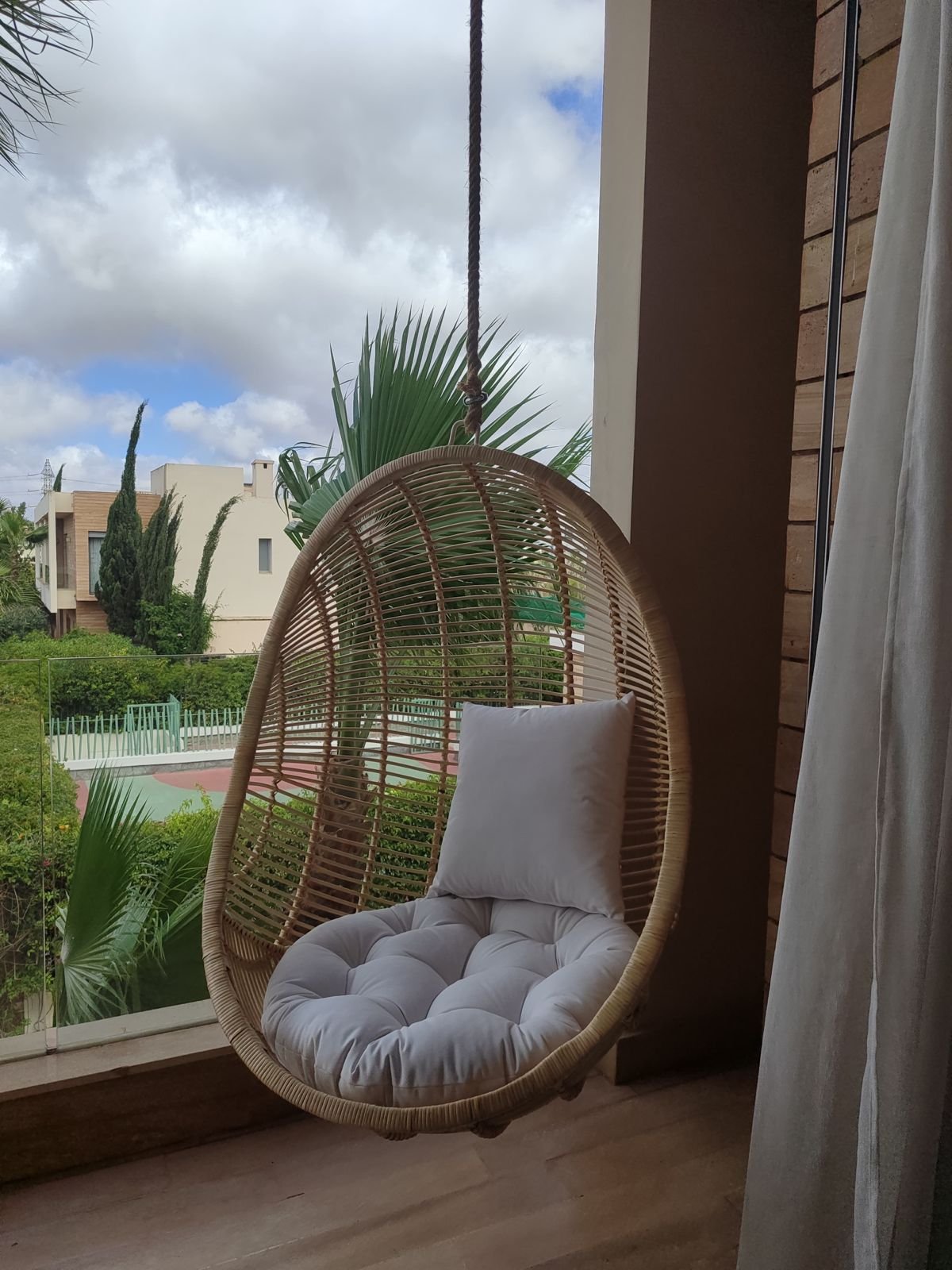 Enhance your outdoor space with this elegant rattan swing chair, perfectly combining comfort and style. Made from high-quality rattan, it is weather-resistant and adds a natural, sophisticated touch to your garden furniture.